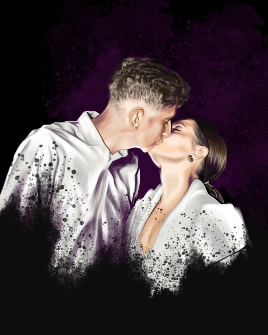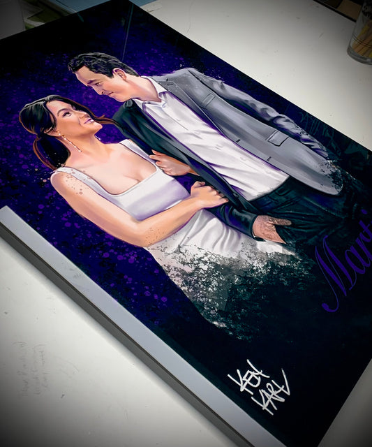 Ken paints his Wedding Art using a digital stylus on an Ipad tablet, using the painting program Procreate. The final images are then output on ChromaLux aluminum sheets that are then infused directly into the metal creating unsurpassed resolution and vibrancy. Ken does NOT use AI or Photoshop to create these images, each and every one is painted by hand.