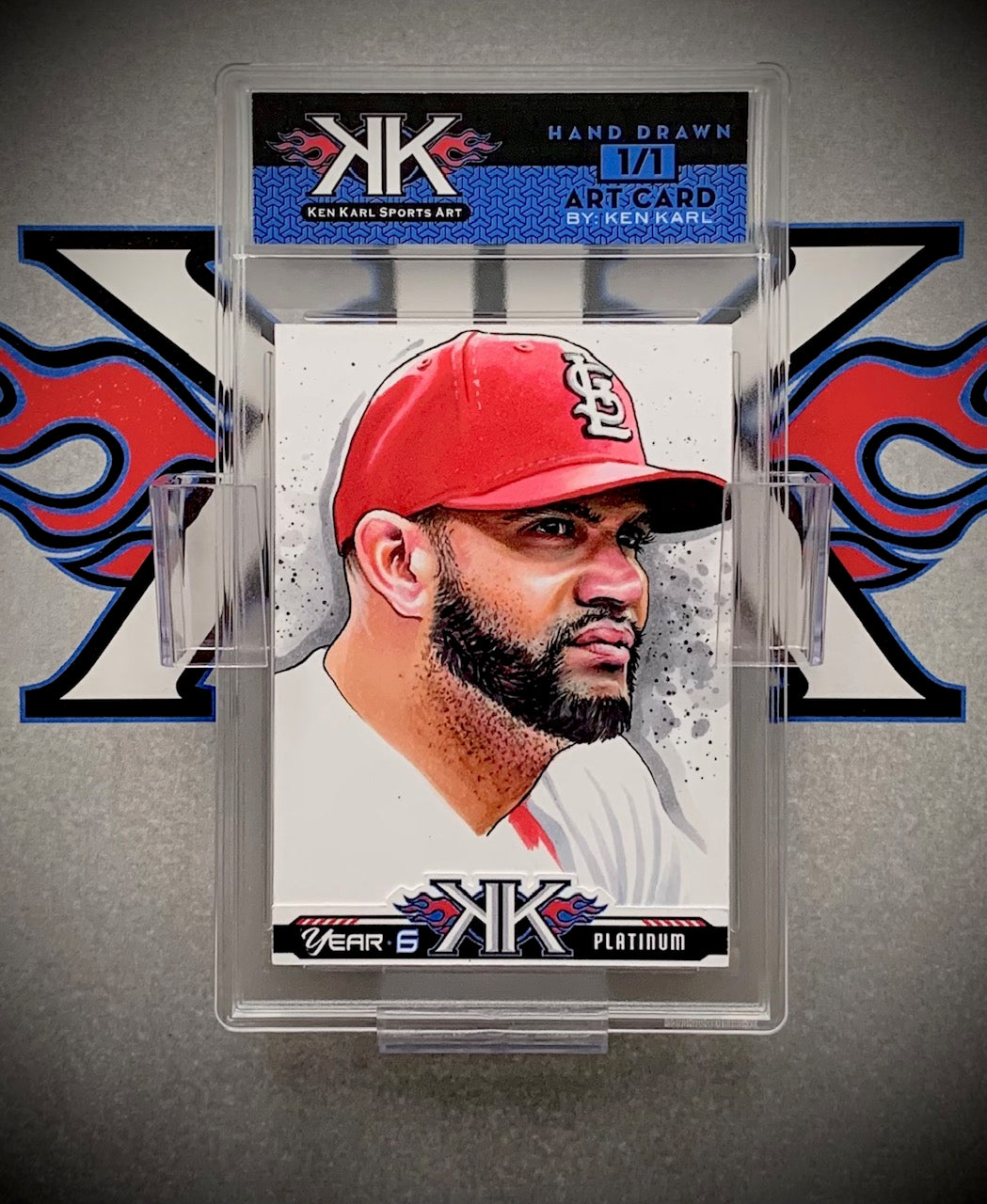 A 1/1 ORIGINAL work of art drawn on trading card sized illustration board of MLB LEGEND and the GREATEST hitter of his generation, Albert Pujols. A true one of a kind collectible.