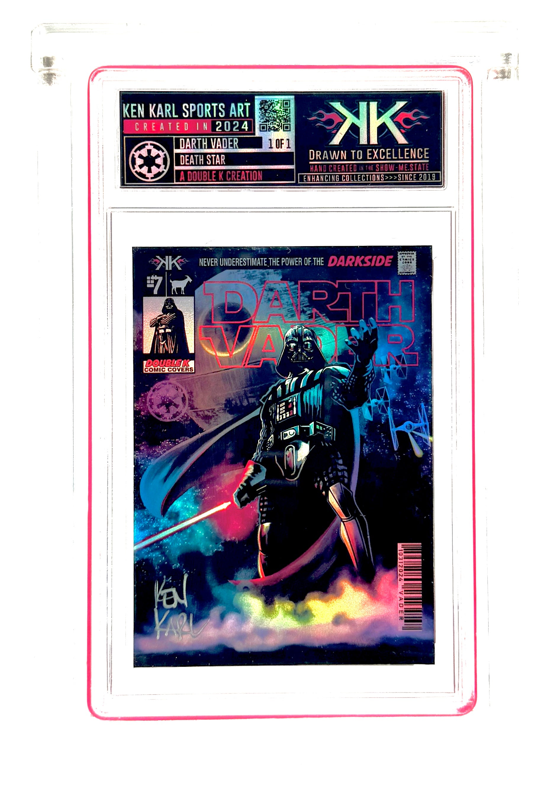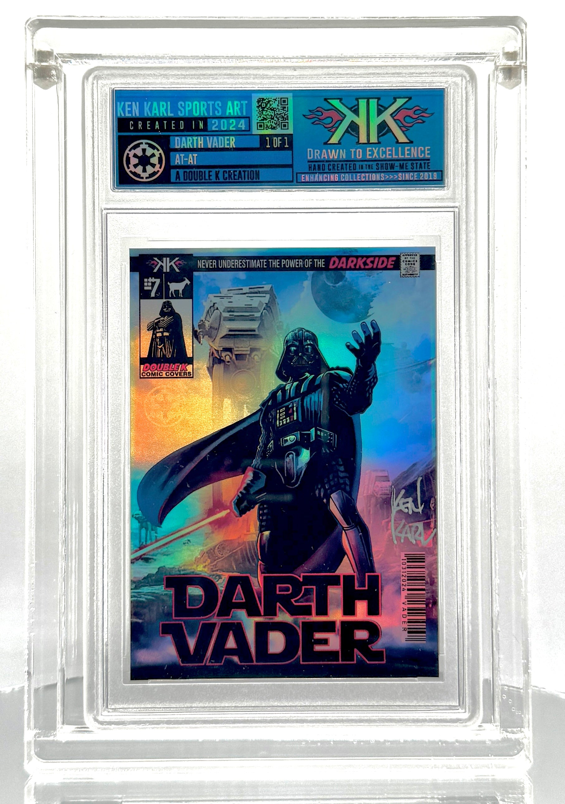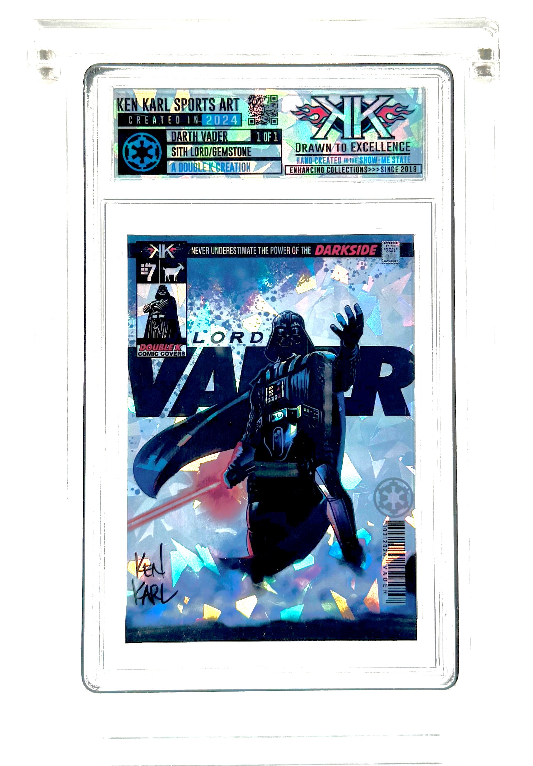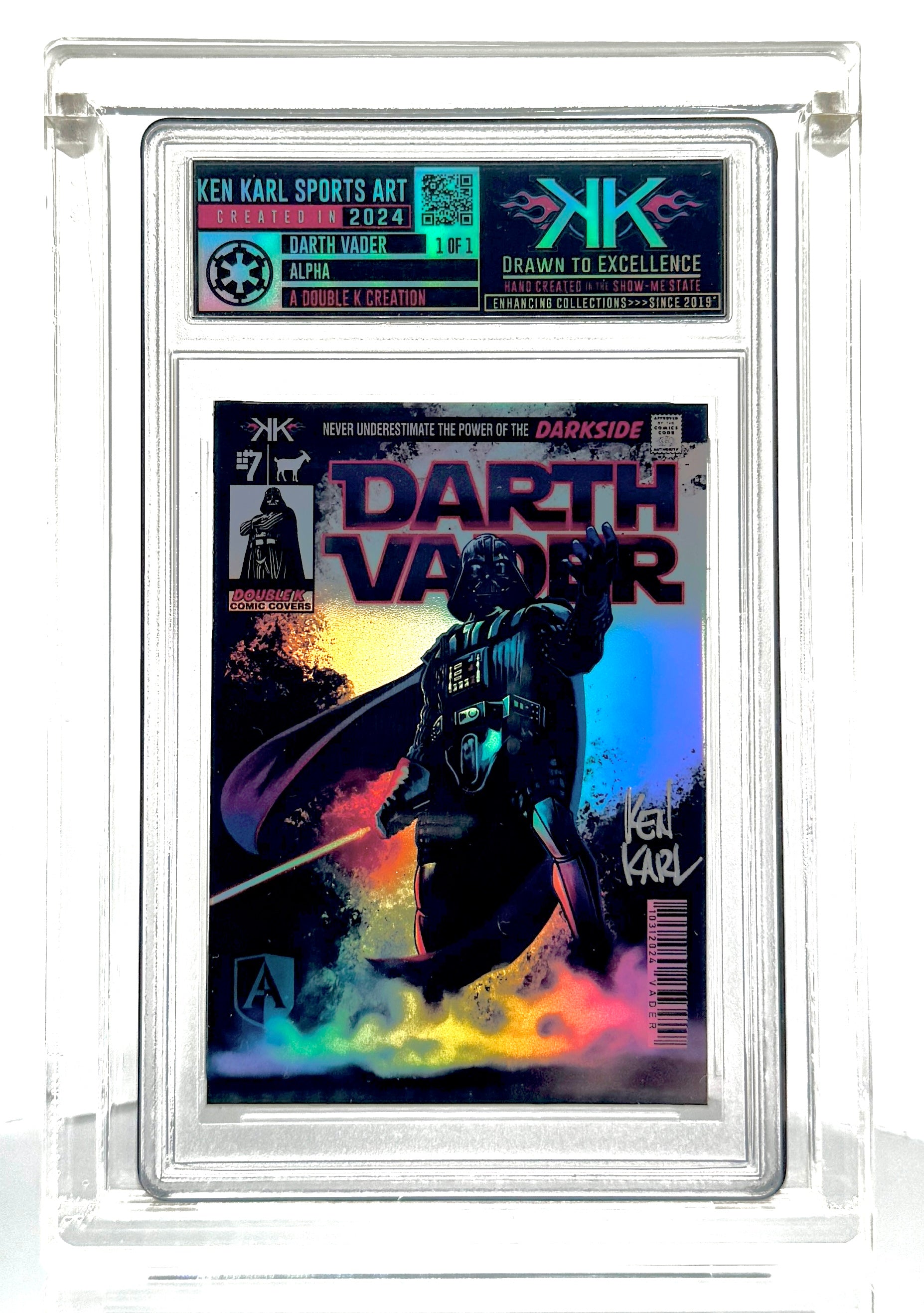 Darth Vader is HERE!! These are limited to just (25) Darth Vader 1/1 art cards. EACH art card is a UNIQUE piece of ORIGINAL ART. Ken has painted each image creating multiple versions of this artwork, unique 1/1 versions produced on trading card sized holographic film or canvas. ALL art cards are either (1) of the images posted or a variant thereof, including a single GOLD card. In hopes of adding even more anticipation to the drop, you will receive (1) RANDOM card from this Vader set with each purchase. I will also be including the NEW CASE BRICKS in the photos with your purchase as well!! I am ALWAYS trying to make a better collectible for my collectors.
