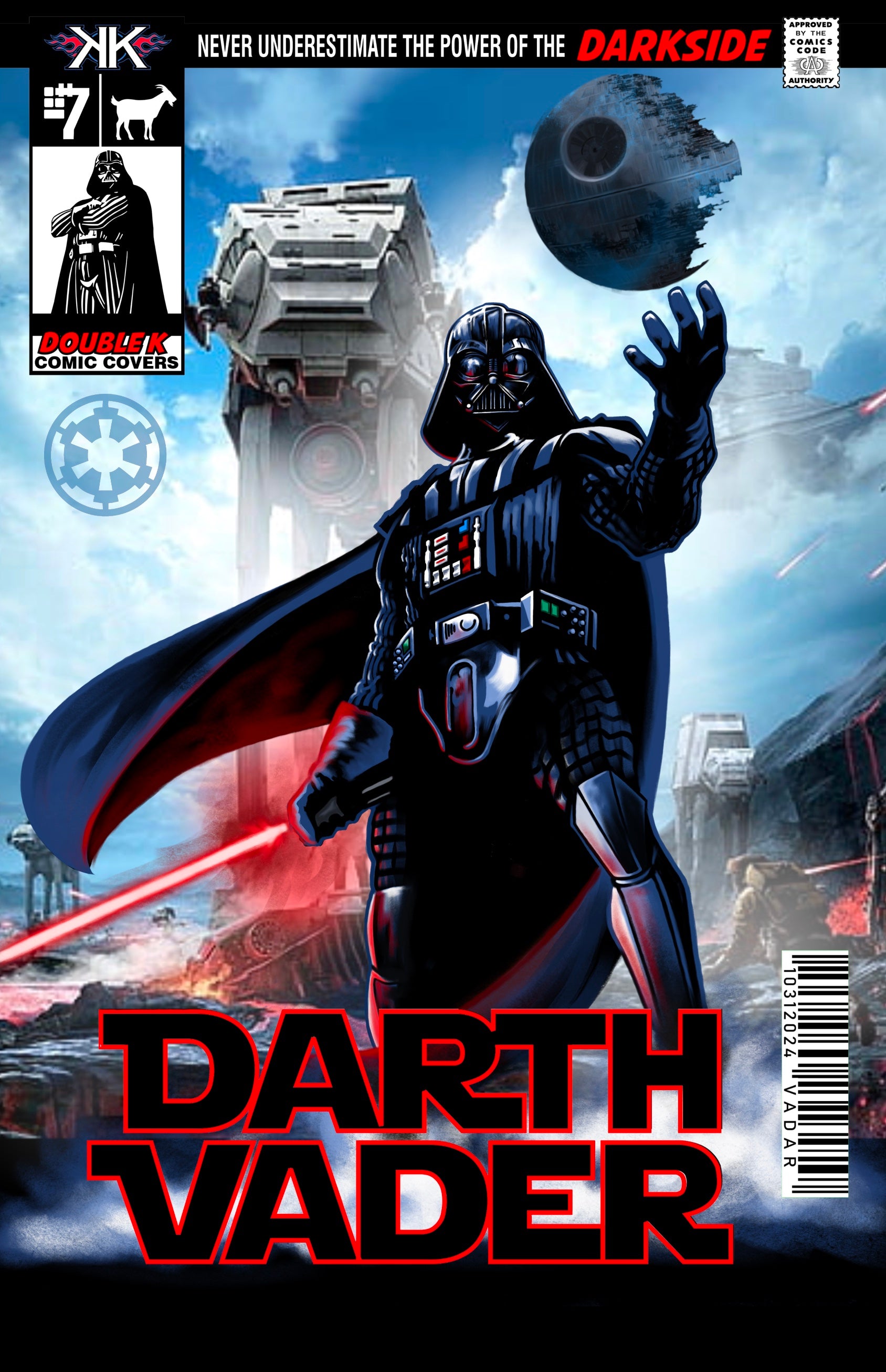Darth Vader is HERE!! These are limited to just (25) Darth Vader AT-AT Comic Cover Slabs. EACH comic sized slab is a holographic foil, signed by the artist himself. Ken has painted each image digitally using the art program Procreate. Each image is a reproduction on holographic film of an ORIGINAL work of art...These are not Photo-shopped images.