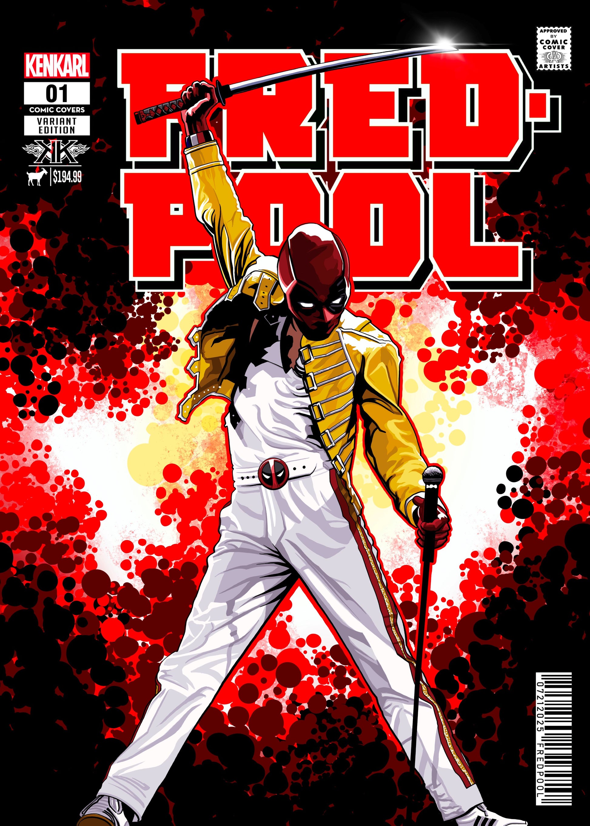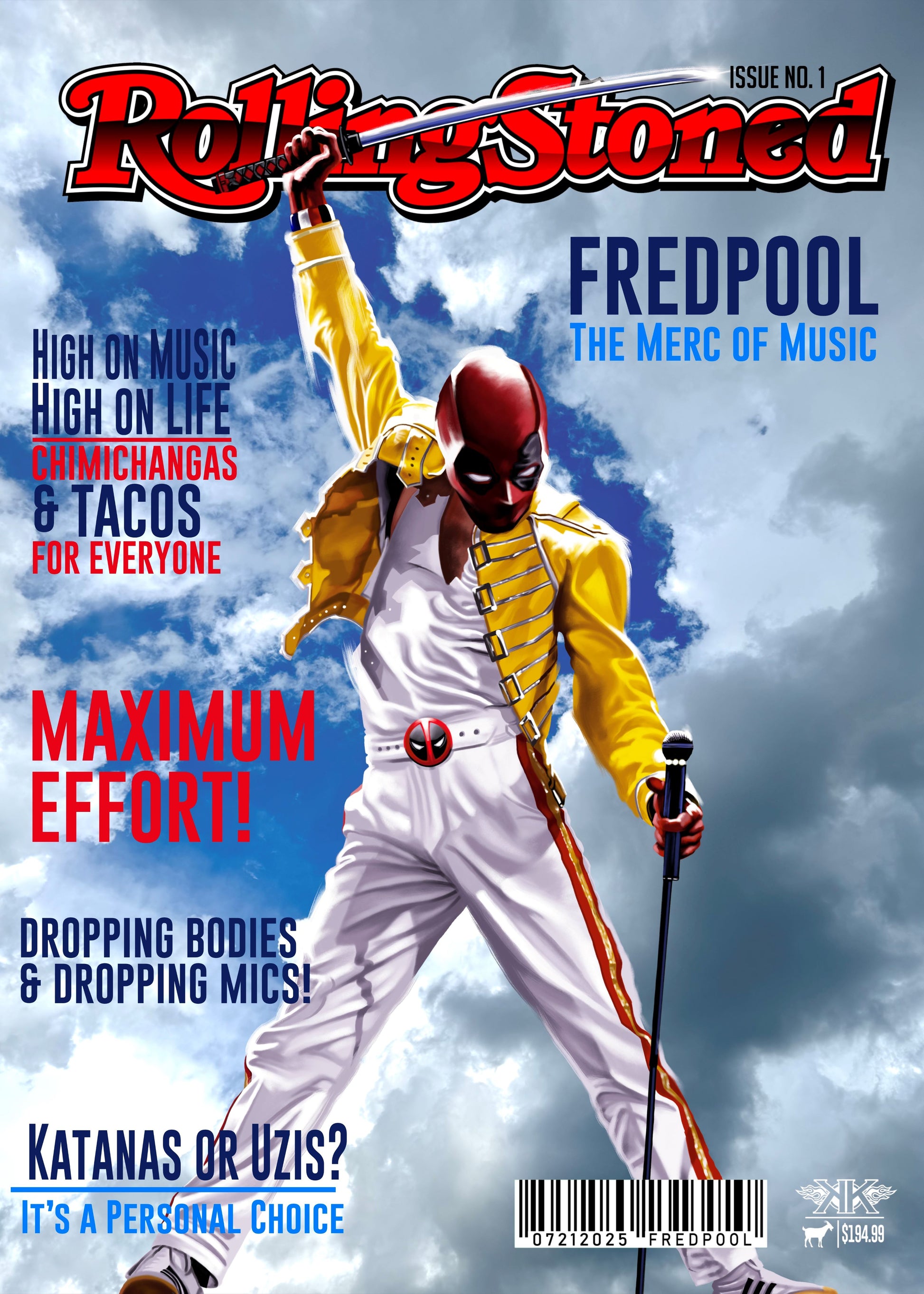 FREDPOOL- The MERC WITH A MIC! This art is limited to just (15) Fredpool1/1 card sized art pieces. EACH card is a UNIQUE piece of ORIGINAL ART. Ken has painted (15) different images. The (1) ALPHA CARD, this is the artwork all other art was created from. There are comicbook cover versions as well as Magazine mashup covers. A Shoe box images, a collage and even a VARIANT ART STYLE round out the set. There are also (3) black slab labels to be chased as a well a gold foil piece. In hopes of adding even more anticipation to the drop, you will receive (1) RANDOM card from this art set with each purchase.