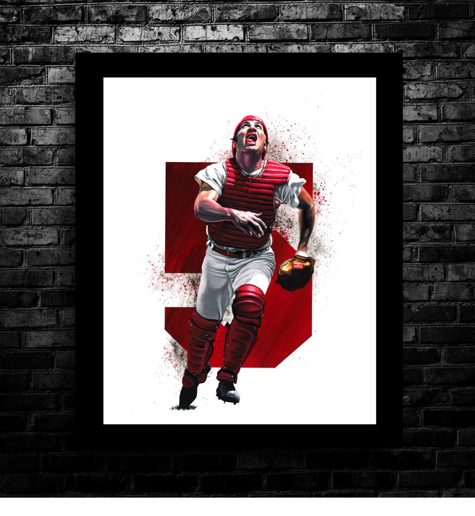 A Limited Edition print of an ORIGINAL mixed media drawing; created using paint, marker and colored pencil. It depicts MLB Legend and Hall of Famer, Johnny Bench. Each print is individually numbered and signed by Ken. Print run is limited to 100.