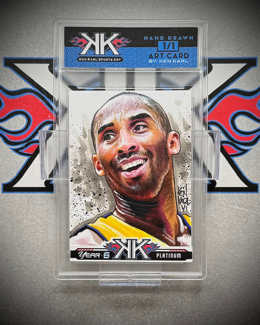 A 1/1 ORIGINAL work of art drawn on trading card sized illustration board of Laker and NBA Legend, Kobe Bryant. A true one of a kind collectible.