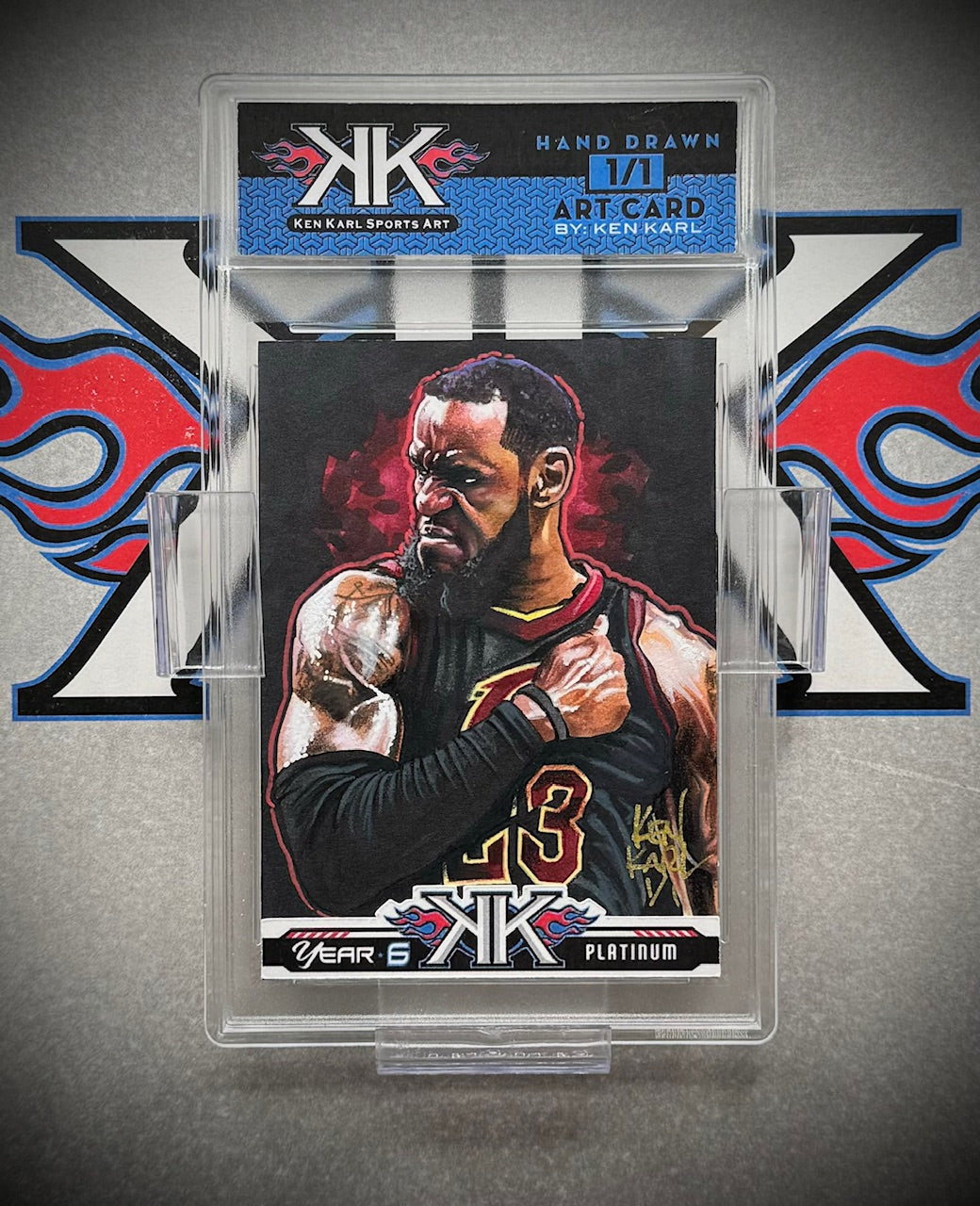 A 1/1 ORIGINAL work of art drawn on trading card sized illustration board of THE KING, LeBron James. A true one of a kind collectible.