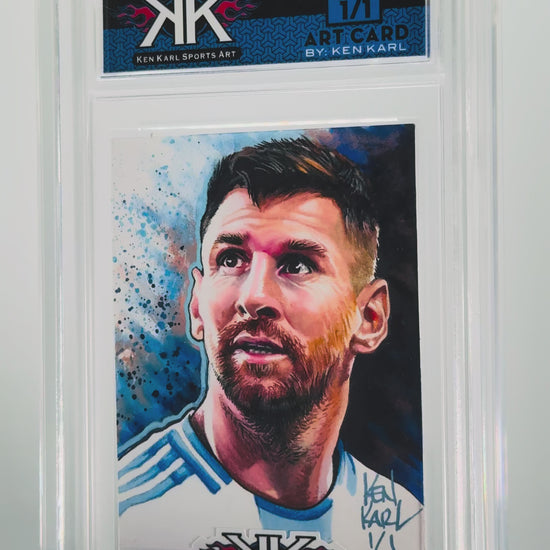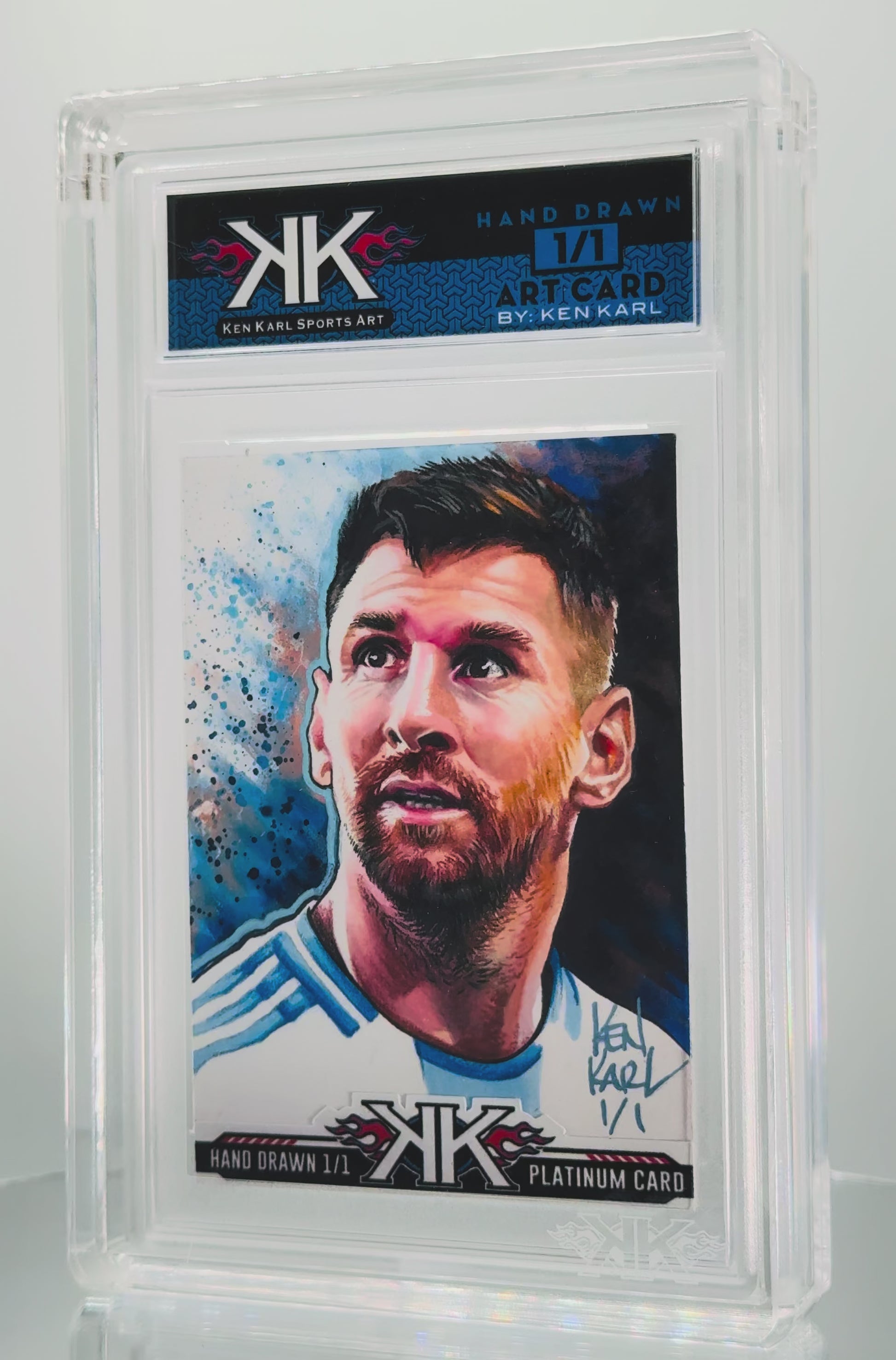 The GOAT! This is a HAND DRAWN 1/1 art card drawn DIRECTLY ON CARD. This is original artwork, created with markers, colored pencil and acrylic paint. It is NOT an AI image, NOT a PHOTOSHOP image... it is original hand created artwork, a mini-masterpiece and TRUE ONE of a KIND!