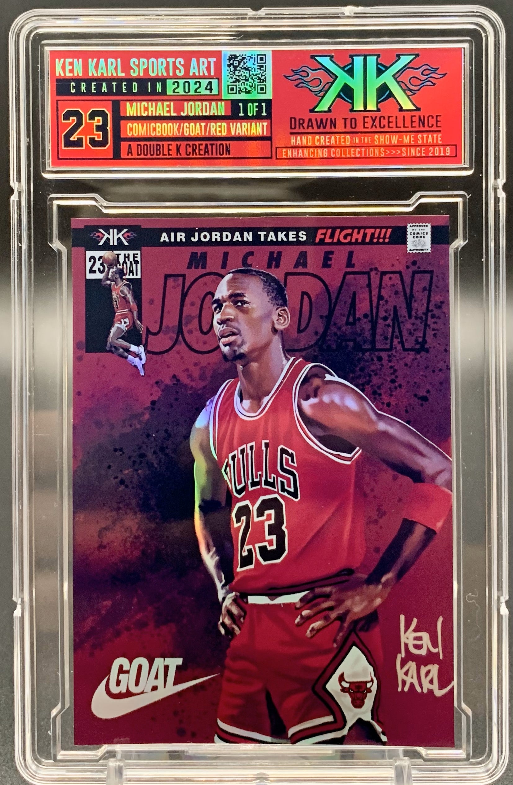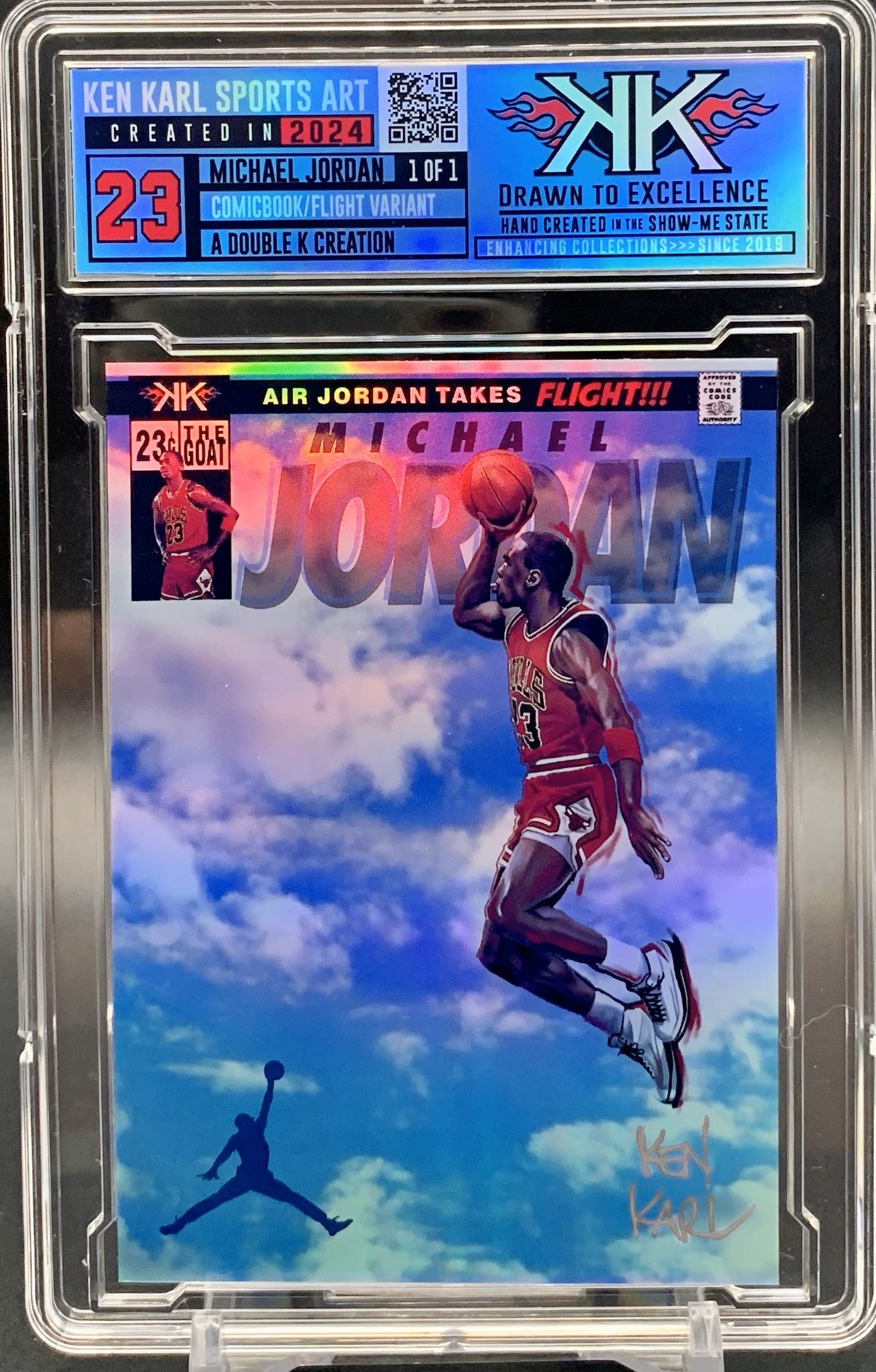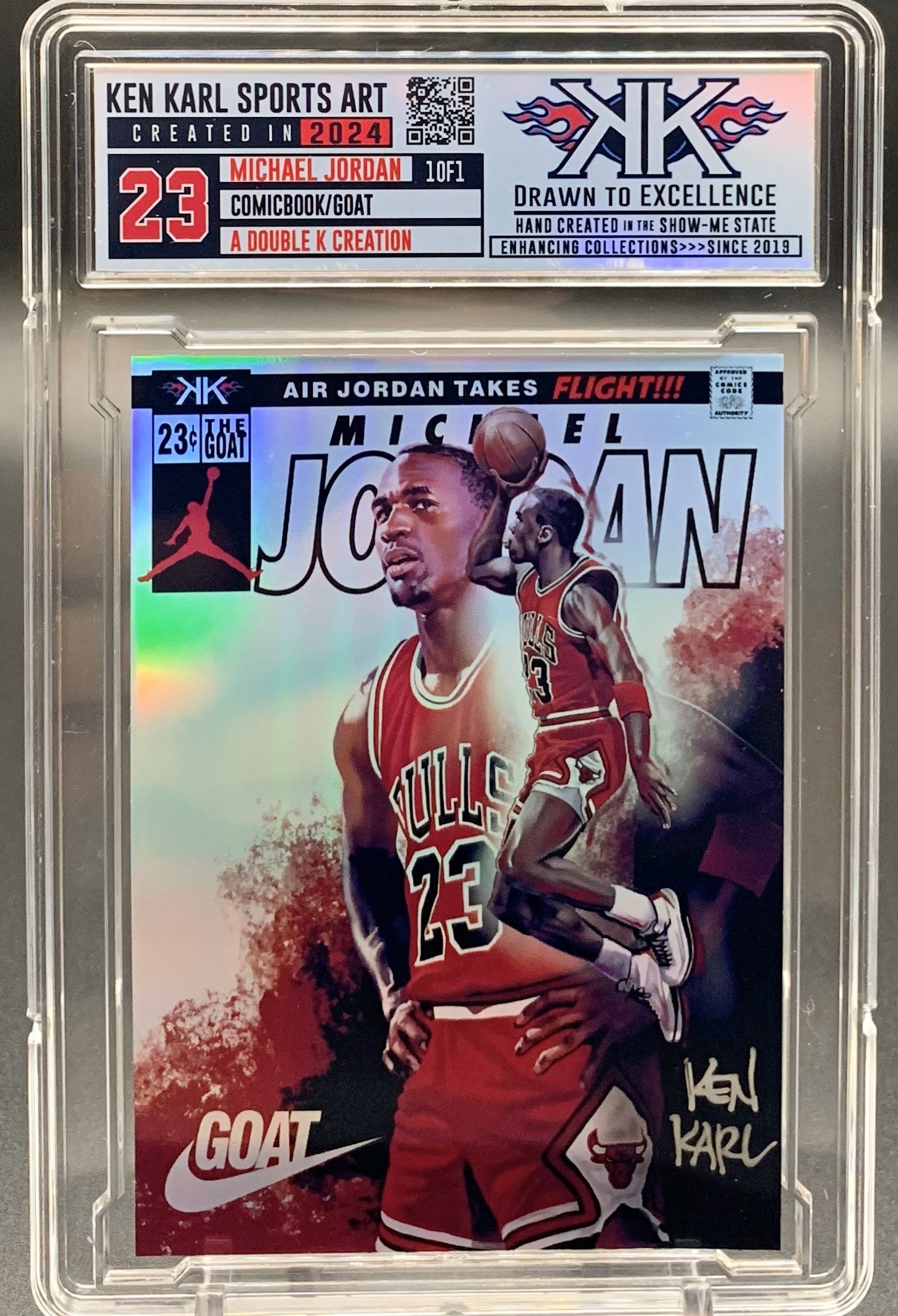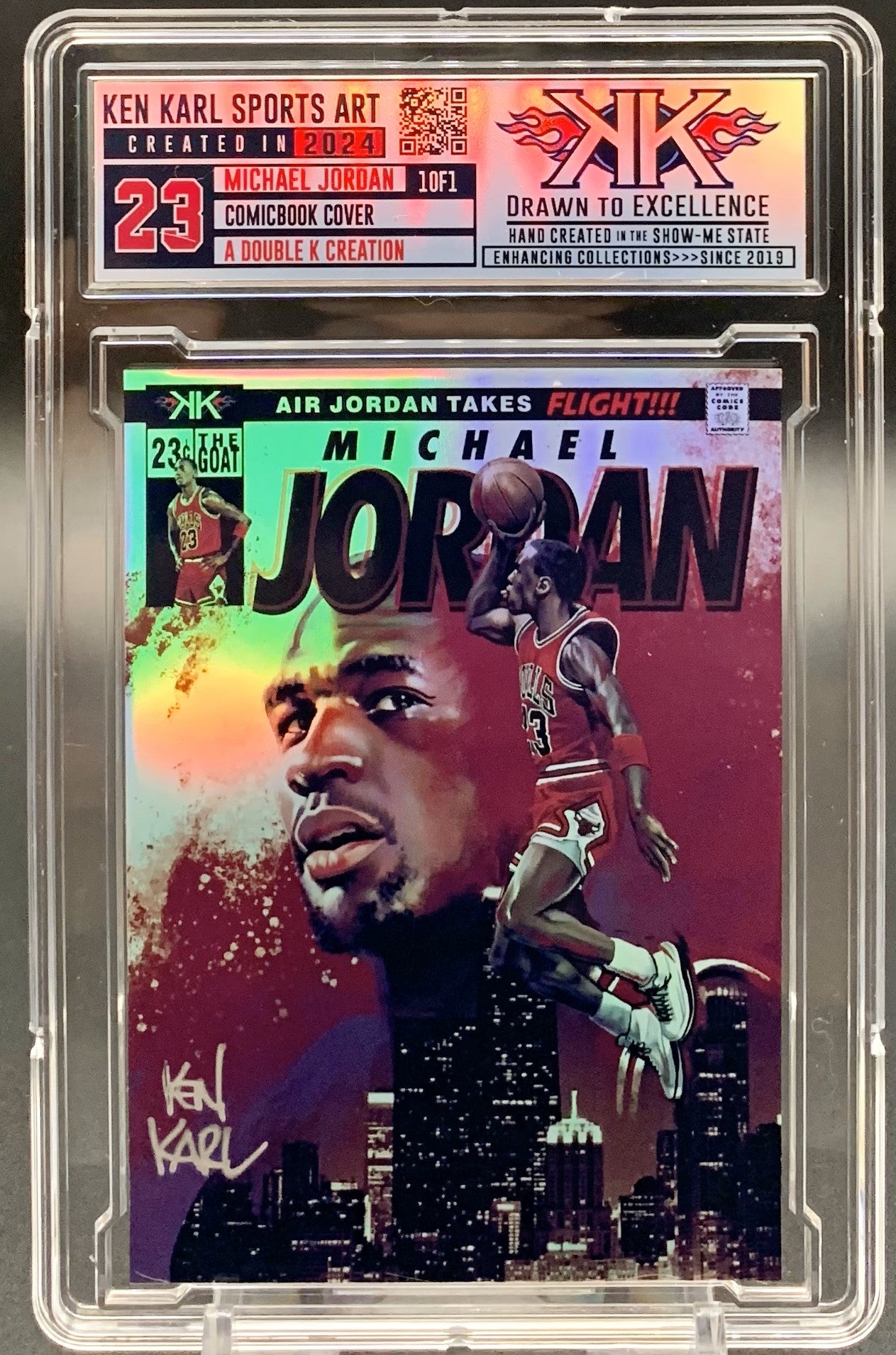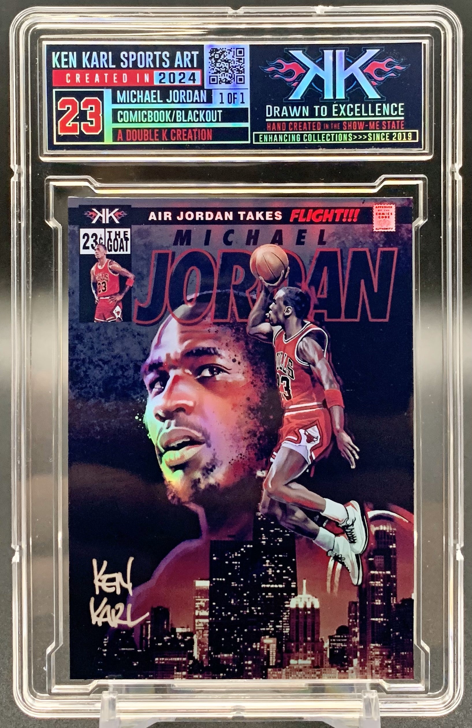 There are (25) 1/1 MICHAEL JORDAN art cards total. Each is listed INDIVIDUALLY BELOW. Each comic book cover inspired card or its variant, is ORIGINAL artwork hand crafted and produced on trading card sized cardstock. Making each card a hand crafted and rare collectible. These are mini works of art! Meant to be FUN and unique additions to a collection. All of these are produced with a different holographic effect. They are FUN must see mini works of art!