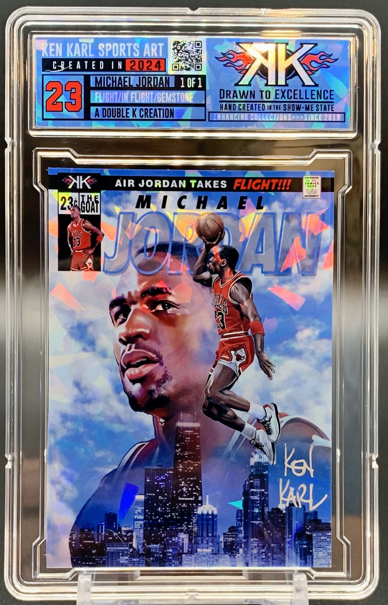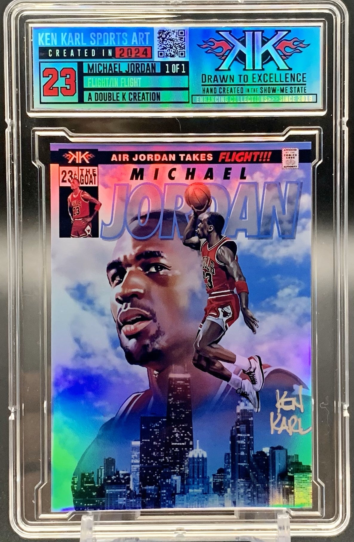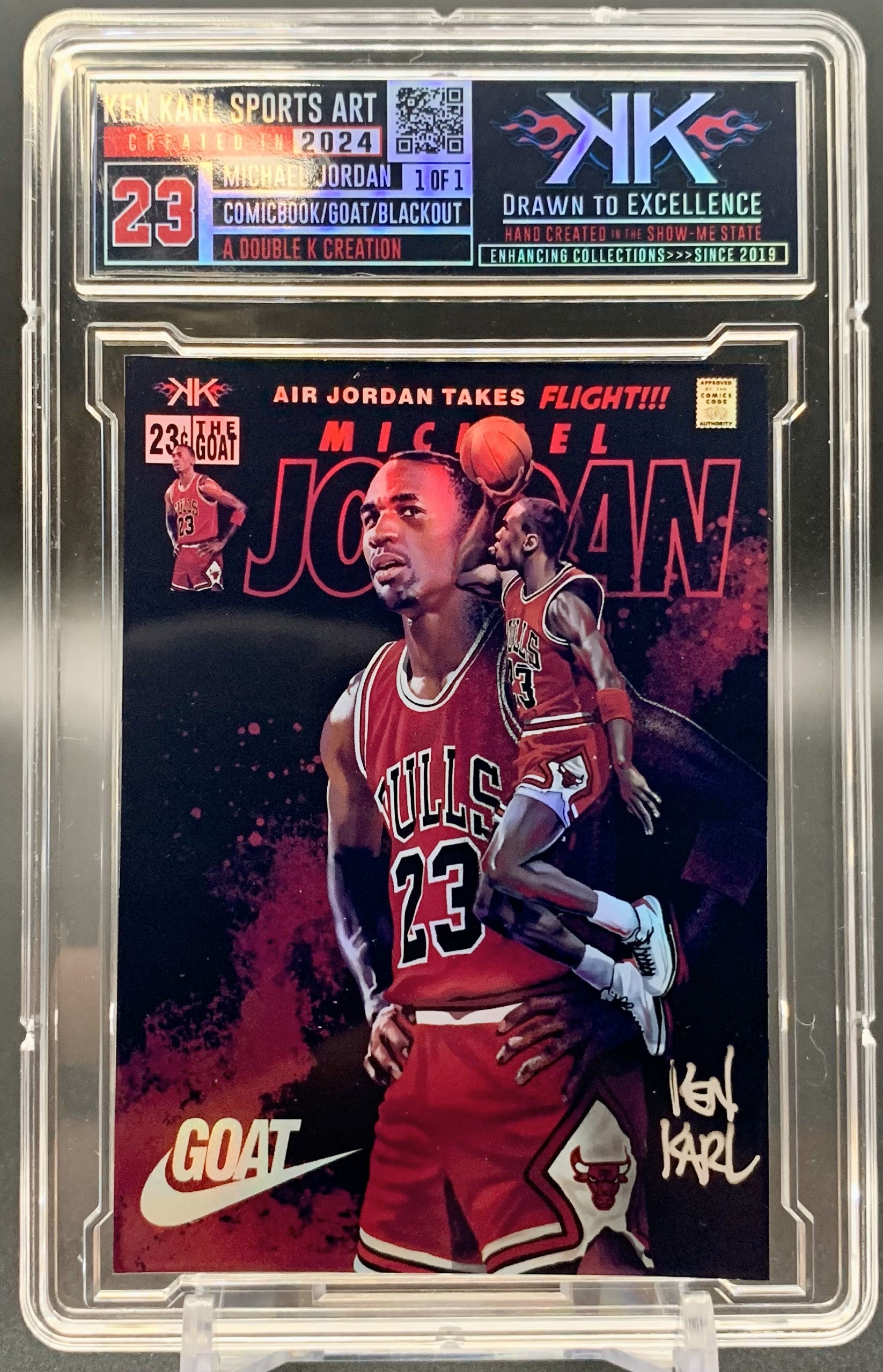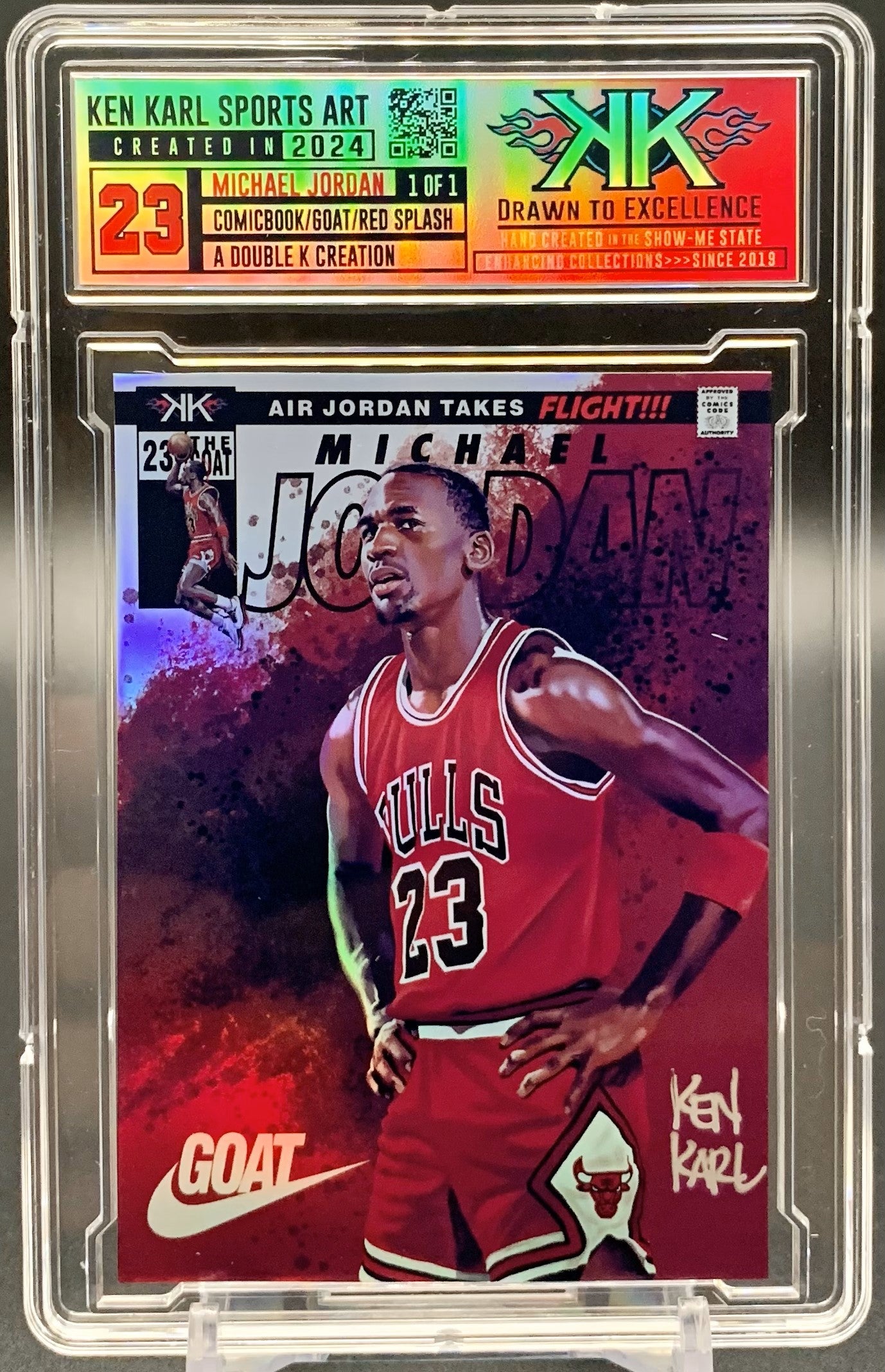 There are (25) 1/1 MICHAEL JORDAN art cards total. Each is listed INDIVIDUALLY BELOW. Each comic book cover inspired card or its variant, is ORIGINAL artwork hand crafted and produced on trading card sized cardstock. Making each card a hand crafted and rare collectible. These are mini works of art! Meant to be FUN and unique additions to a collection. All of these are produced with a different holographic effect. They are FUN must see mini works of art!