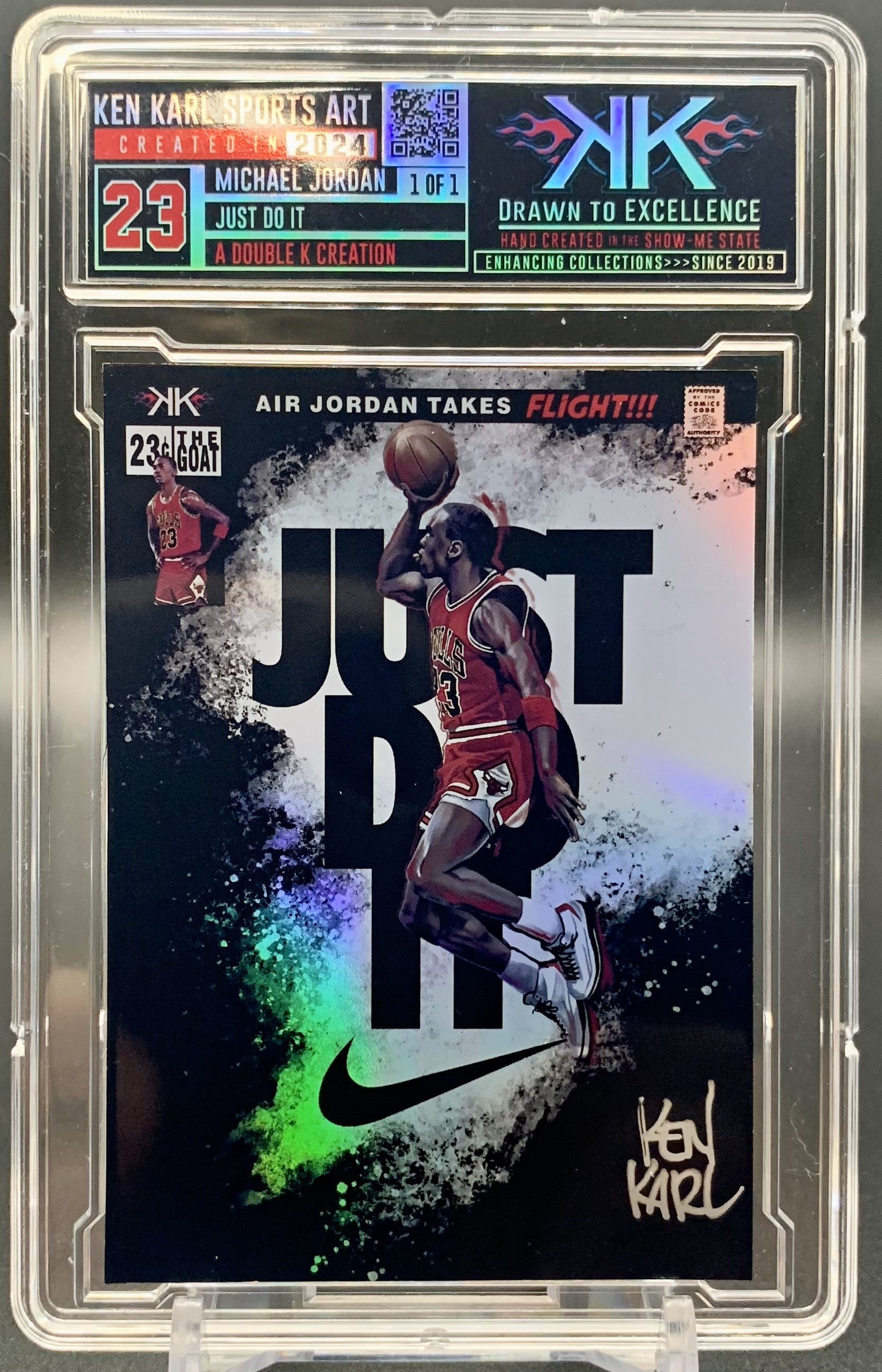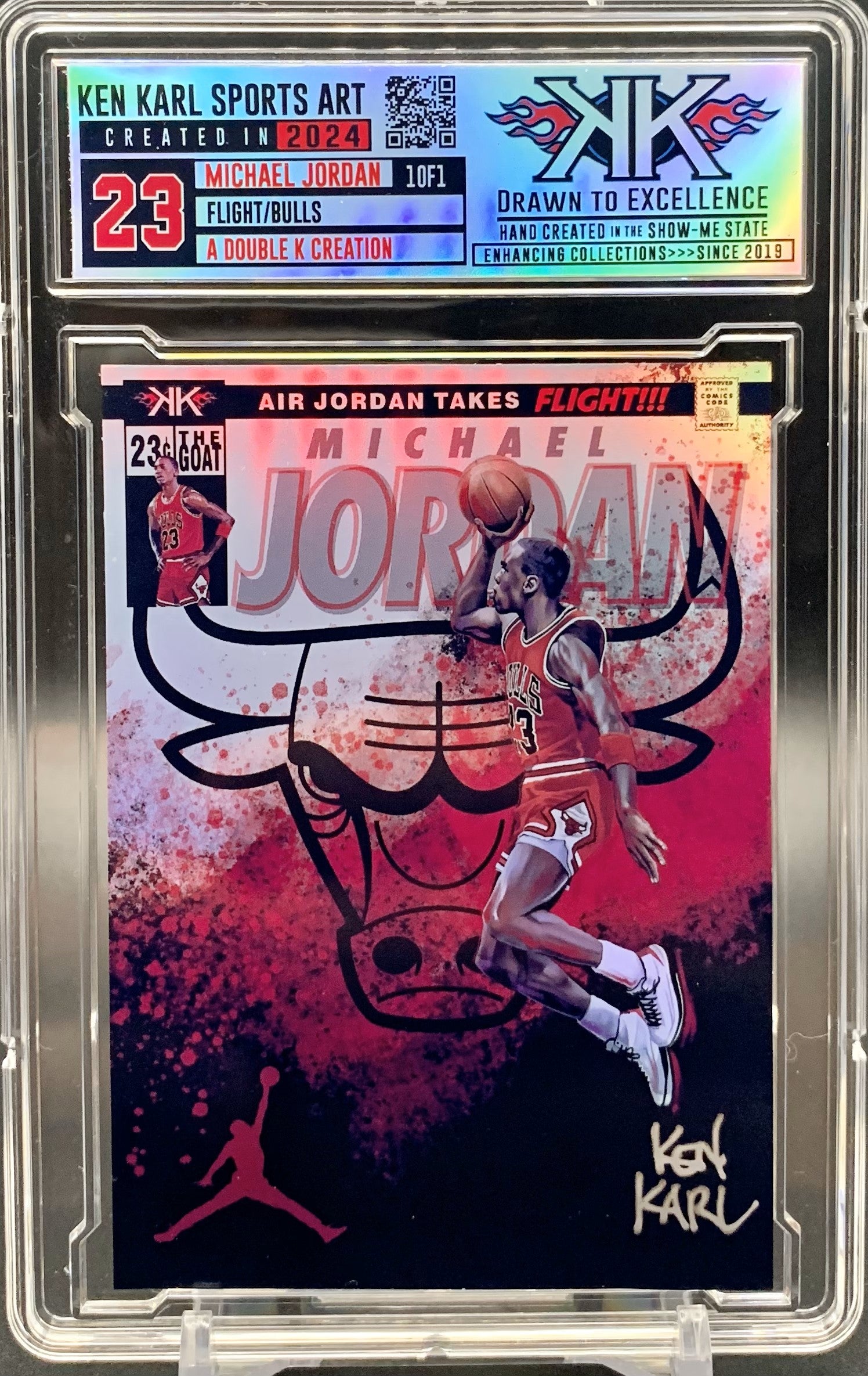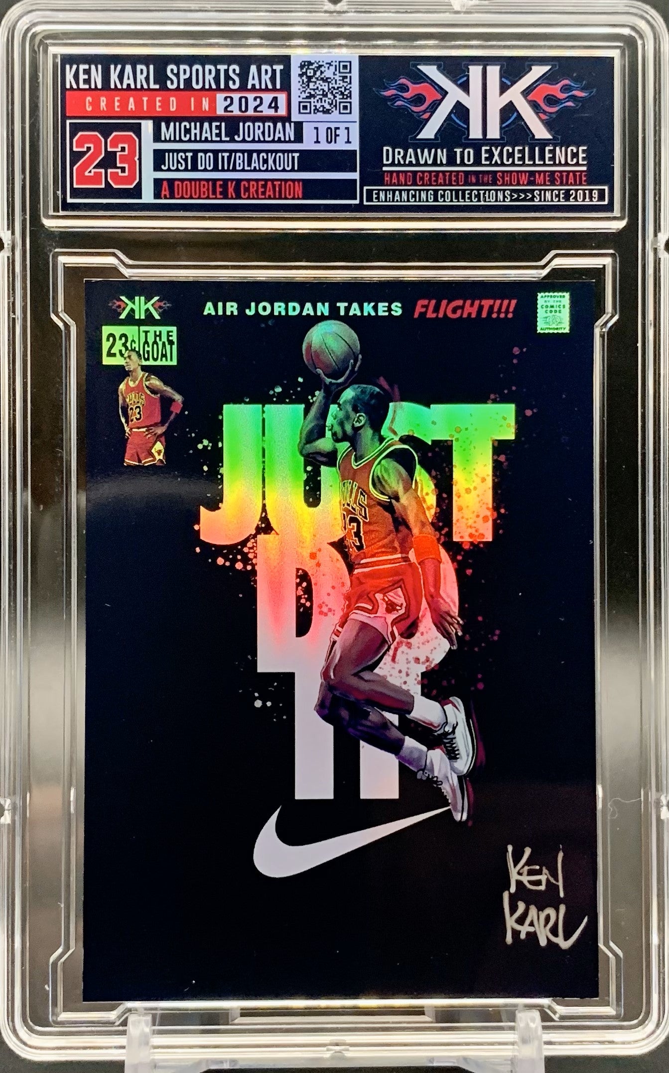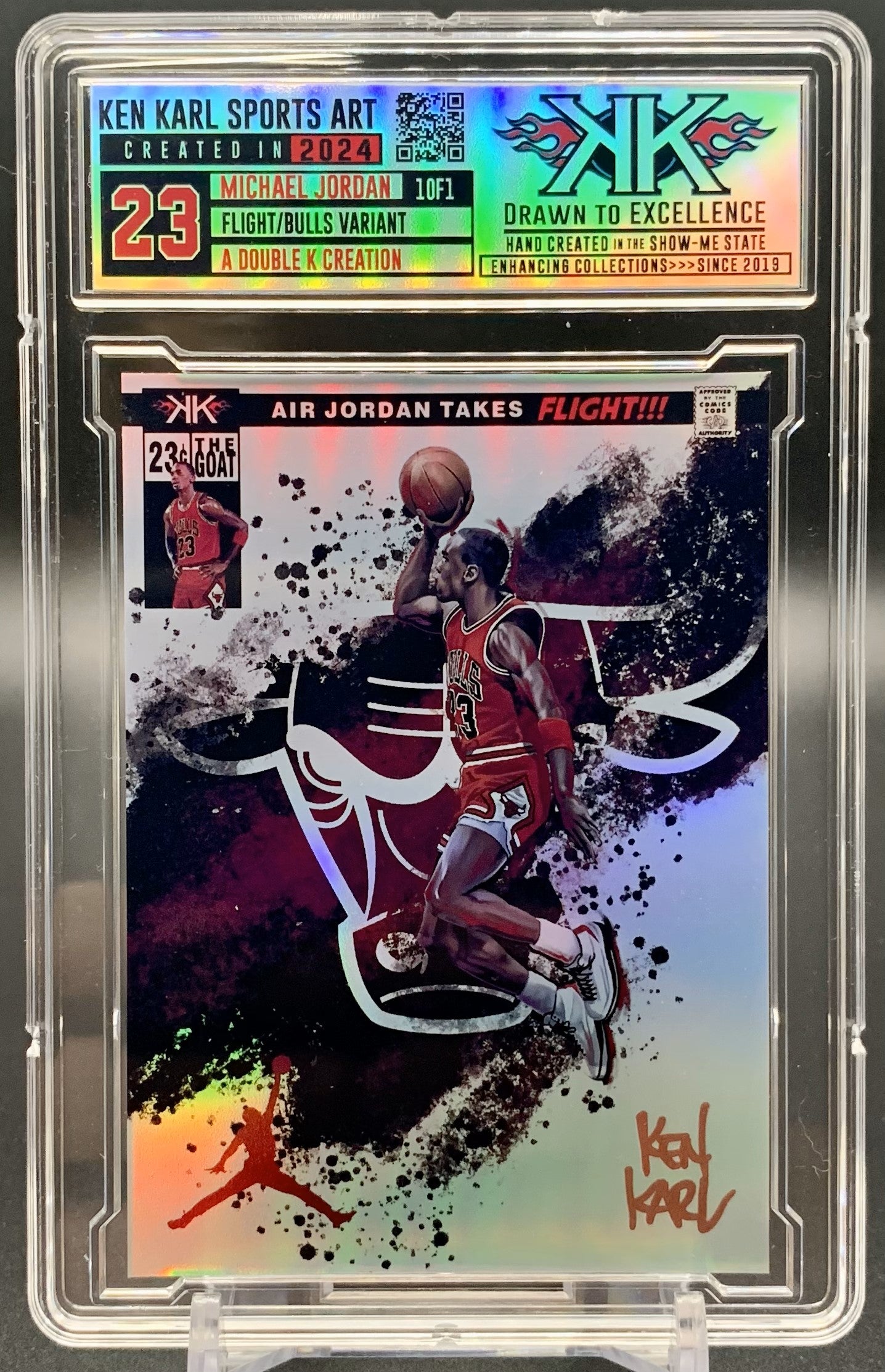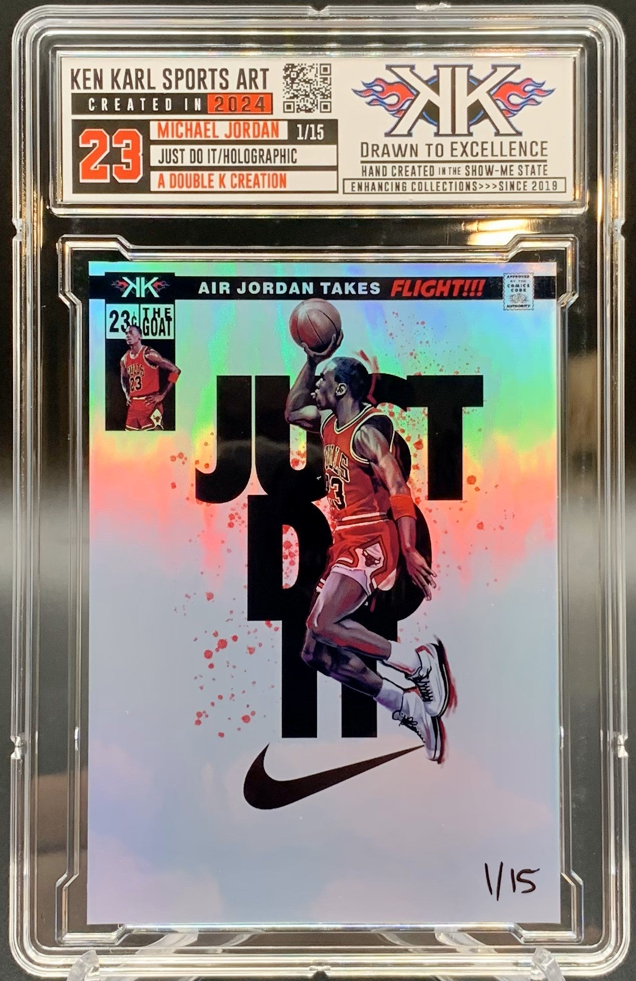 There are (25) 1/1 MICHAEL JORDAN art cards total. Each is listed INDIVIDUALLY BELOW. Each comic book cover inspired card or its variant, is ORIGINAL artwork hand crafted and produced on trading card sized cardstock. Making each card a hand crafted and rare collectible. These are mini works of art! Meant to be FUN and unique additions to a collection. All of these are produced with a different holographic effect. They are FUN must see mini works of art!