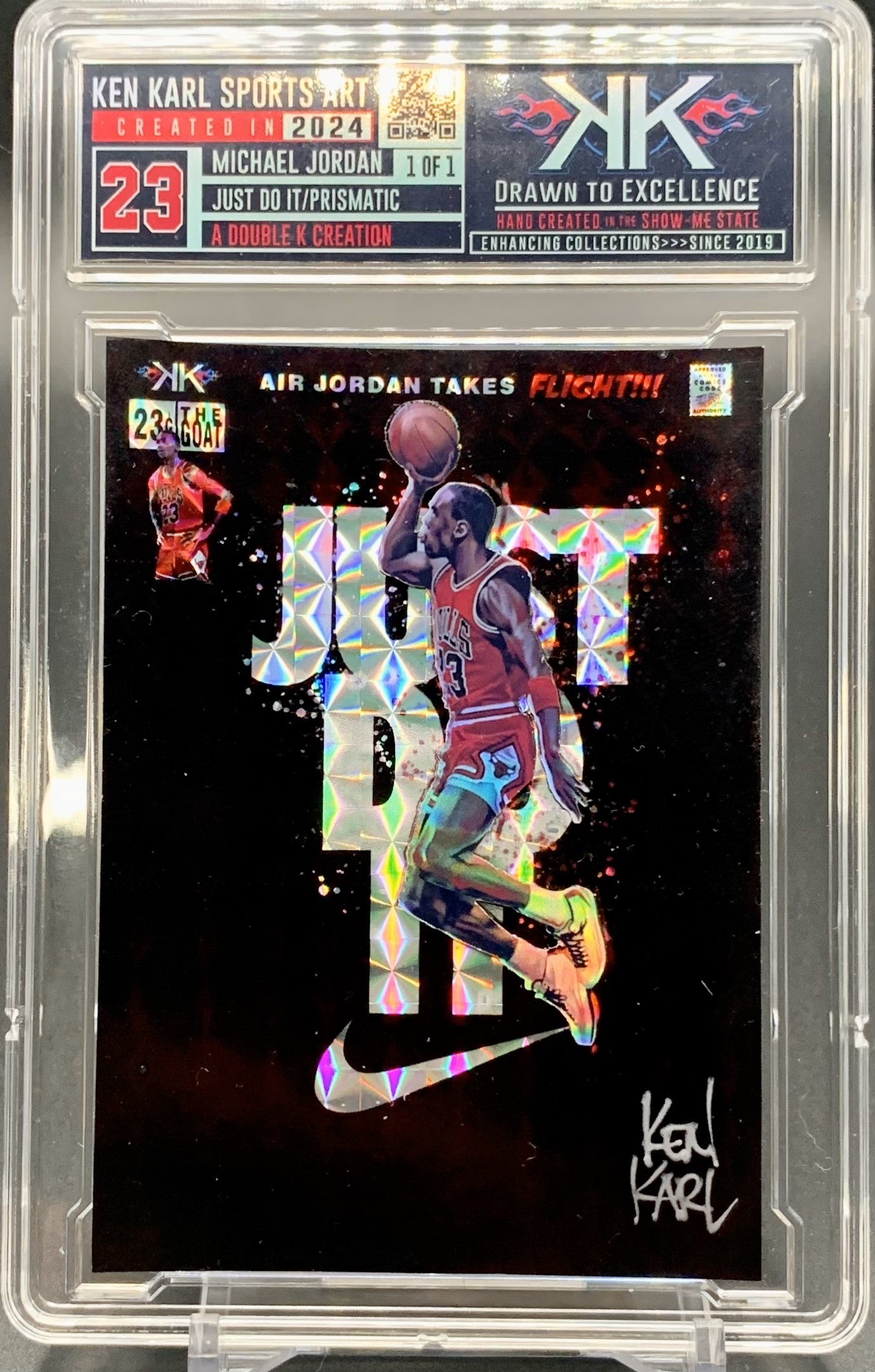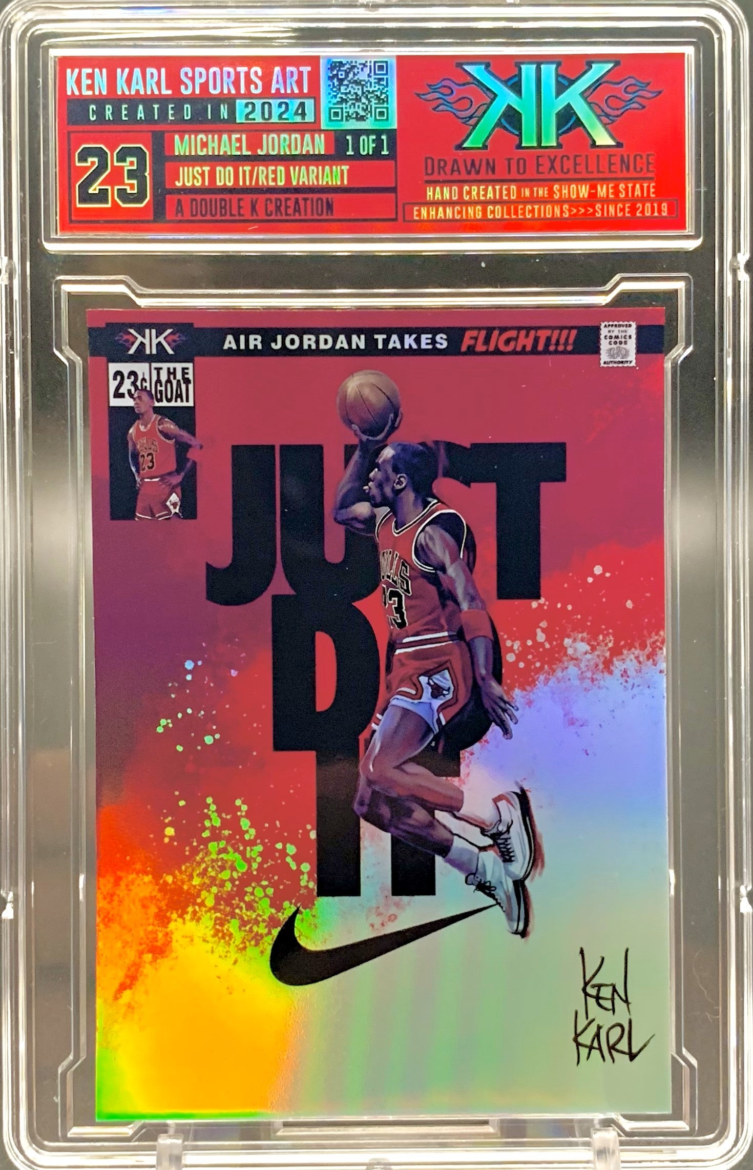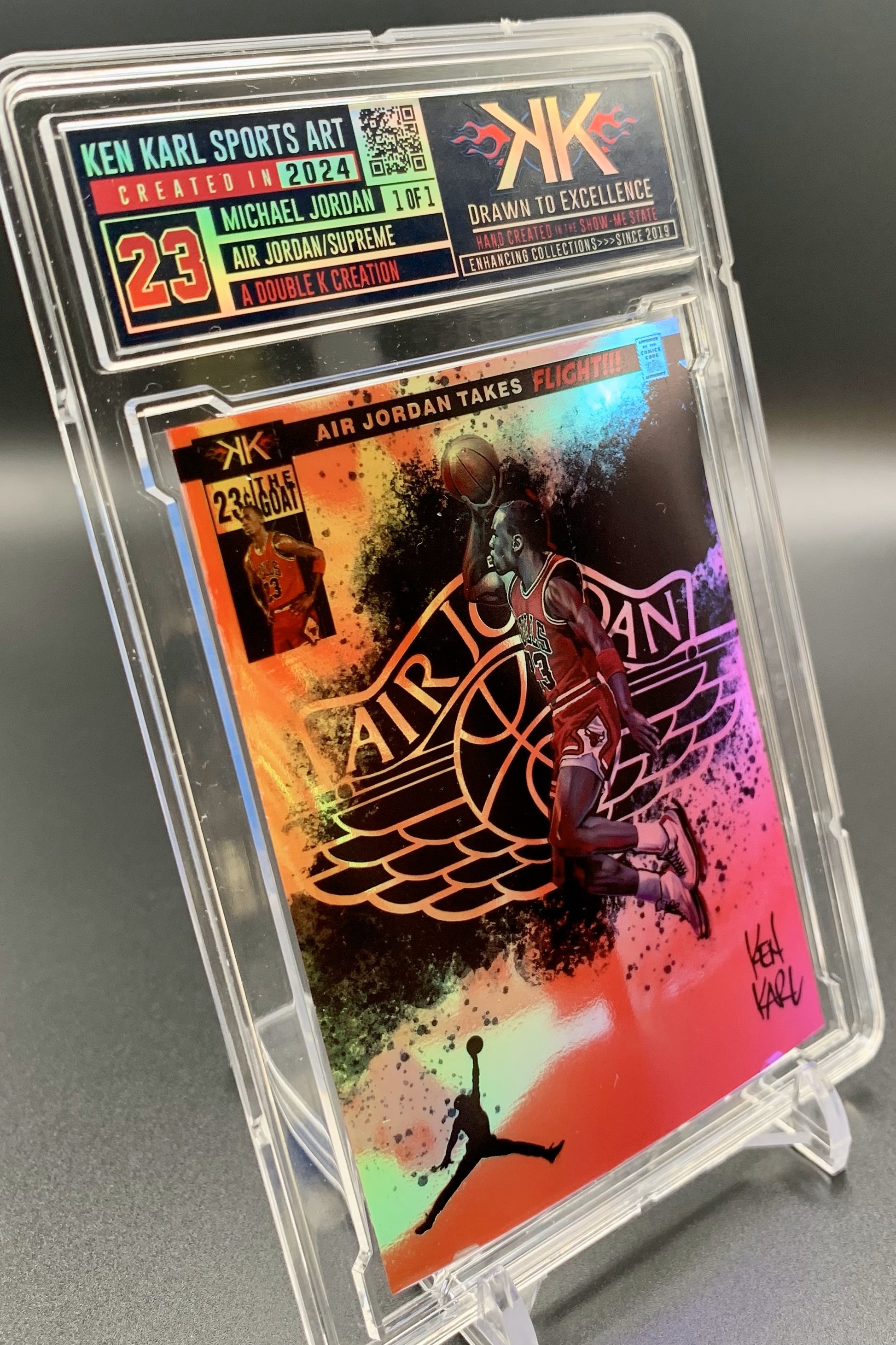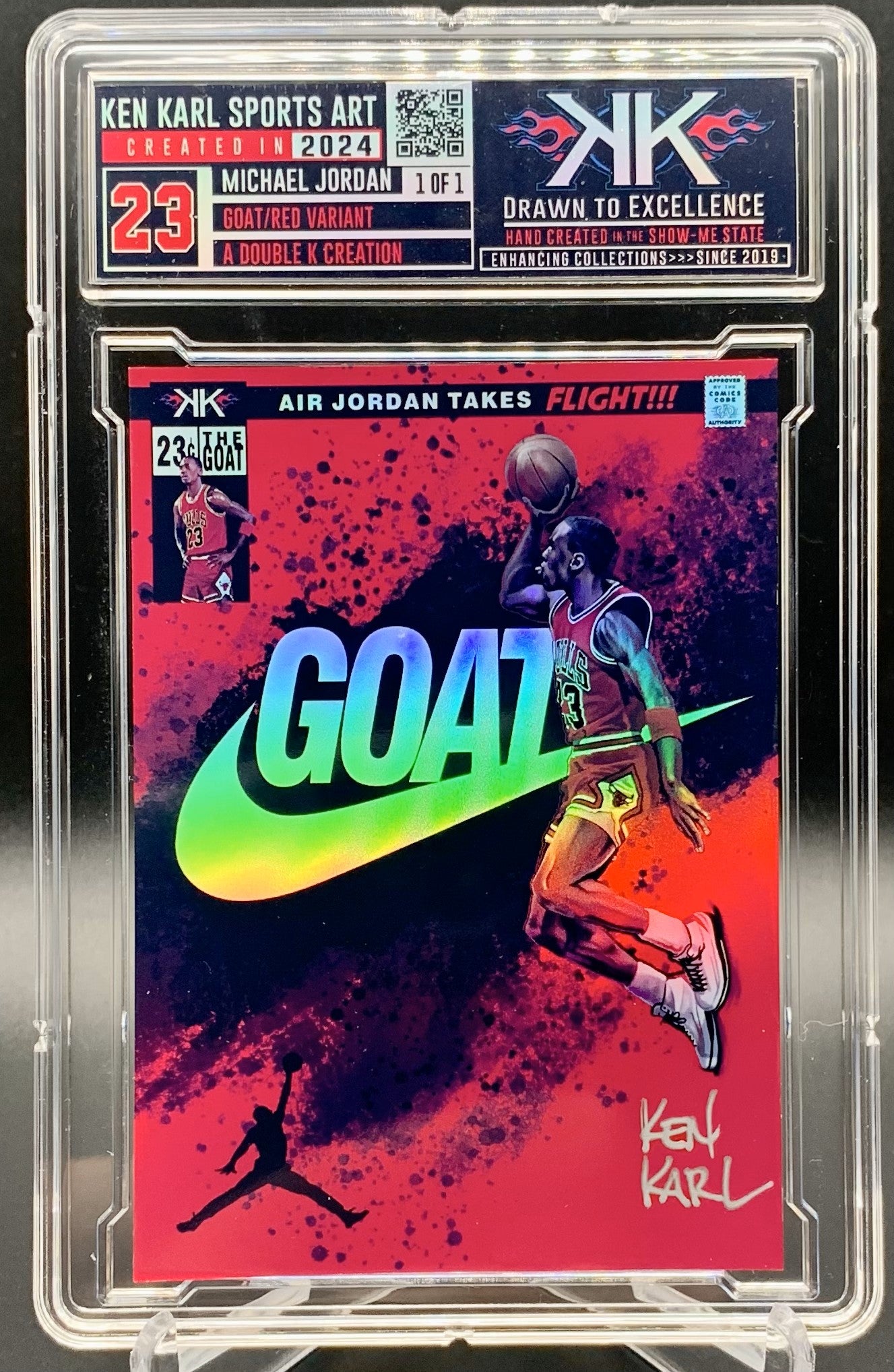 There are (25) 1/1 MICHAEL JORDAN art cards total. Each is listed INDIVIDUALLY BELOW. Each comic book cover inspired card or its variant, is ORIGINAL artwork hand crafted and produced on trading card sized cardstock. Making each card a hand crafted and rare collectible. These are mini works of art! Meant to be FUN and unique additions to a collection. All of these are produced with a different holographic effect. They are FUN must see mini works of art!