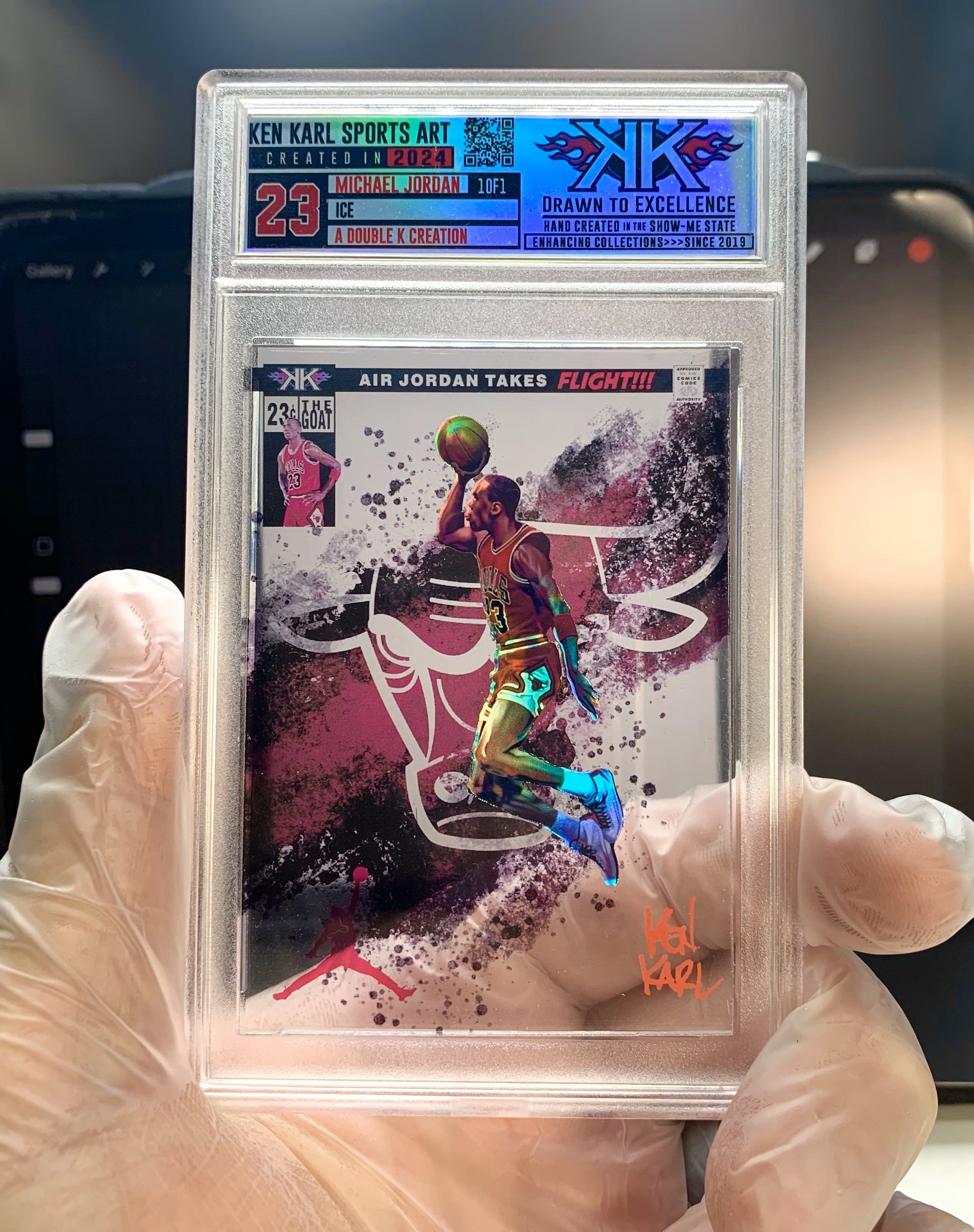 (25) TOTAL HOLOGRAPHIC 1of1,ARTIST SIGNED CARDS ($79.99). Every card is produced on holographic film adding a NEXT level appeal to them. Each 1of1 and is signed by artist, Ken Karl. (Please note, since each card has been built by hand slight imperfections may exist.)