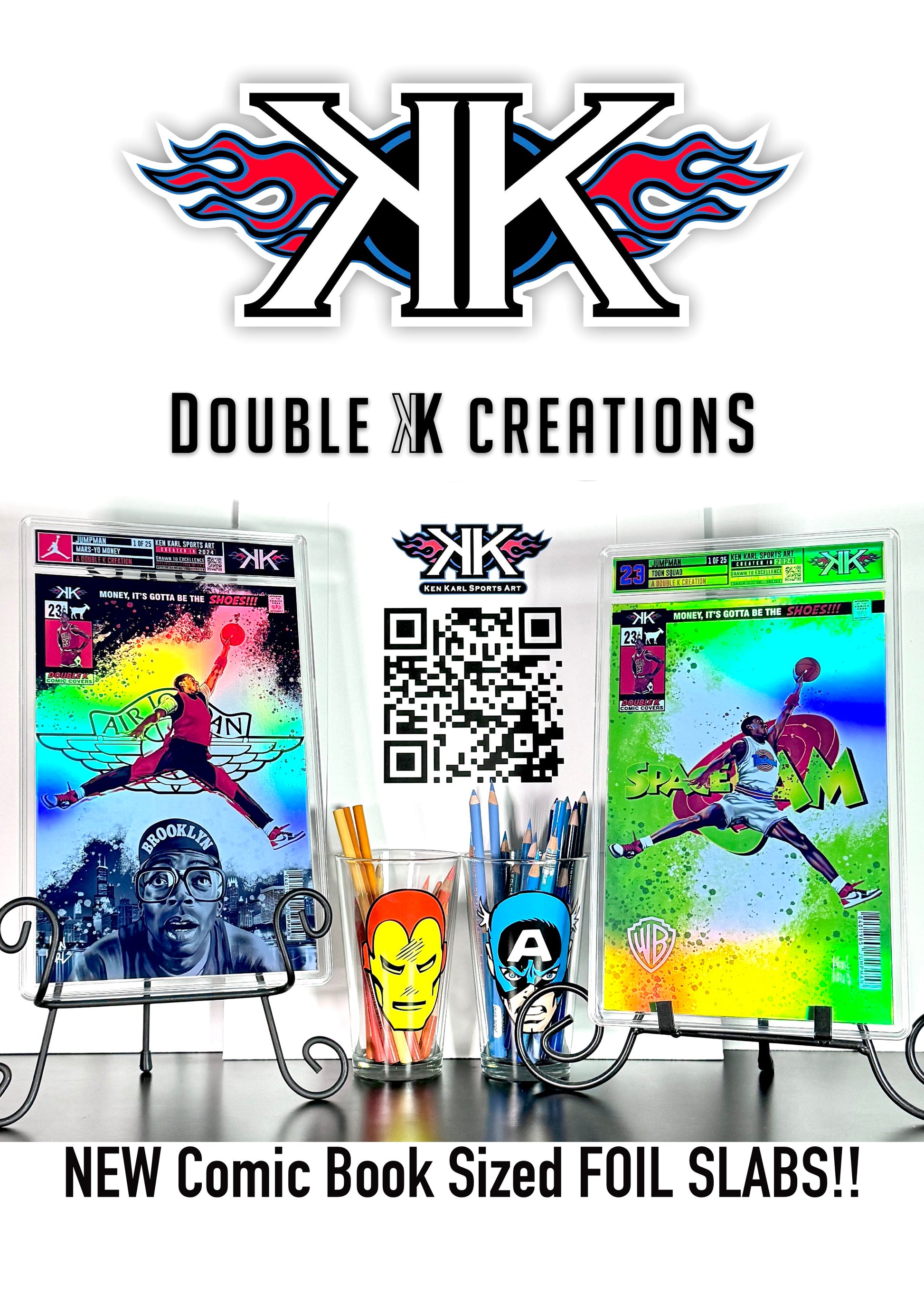 JUMPMAN Comic Book SIZED Slab is HERE!! These are limited to just (25) Michael Jordan JUMPAN Mars Blackmon Comic Cover Slabs. EACH comic sized slab is a holographic foil, signed by the artist himself. Ken has painted each image digitally using the art program Procreate. Each image is a reproduction on holographic film of an ORIGINAL work of art...These are not Photo-shopped images.