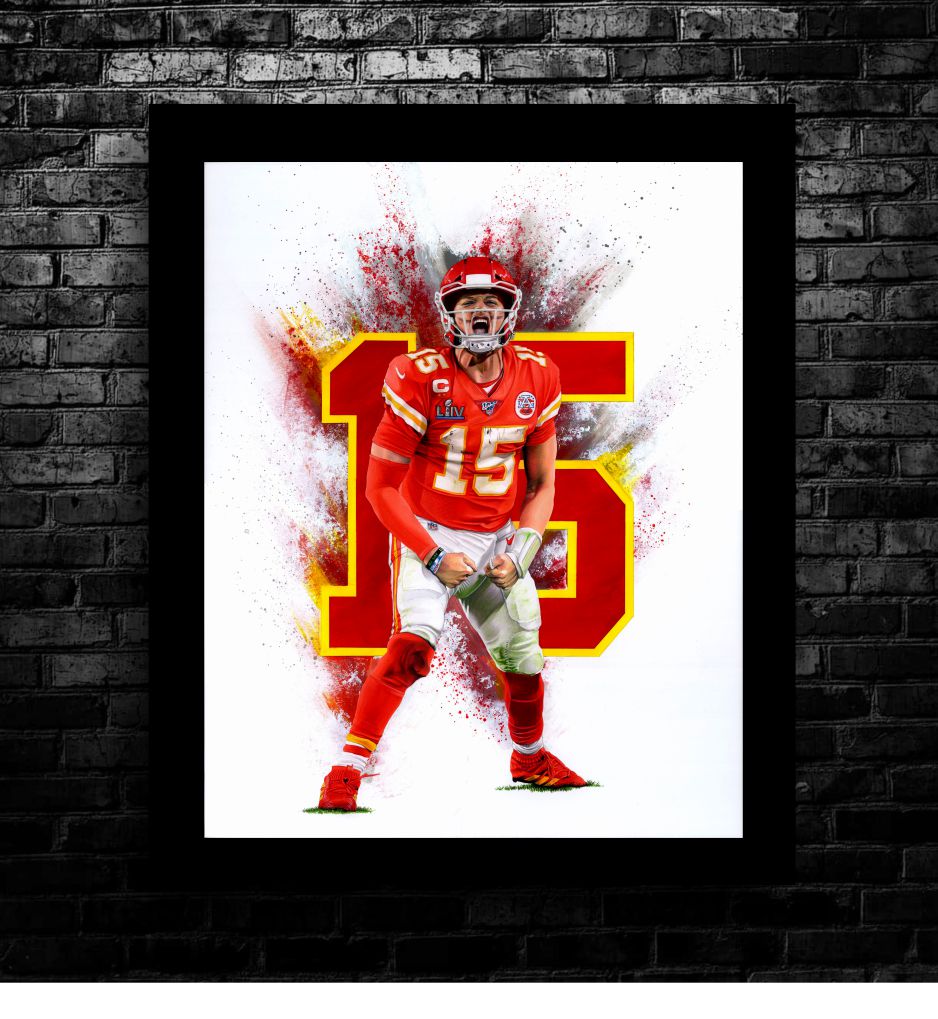A Limited Edition print of an ORIGINAL mixed media drawing; created using paint, marker and colored pencil. It depicts NFL SUPERSTAR and Kansas City Chief, Patrick Mahomes. Each print is individually numbered and signed by Ken. Print run is limited to 100.