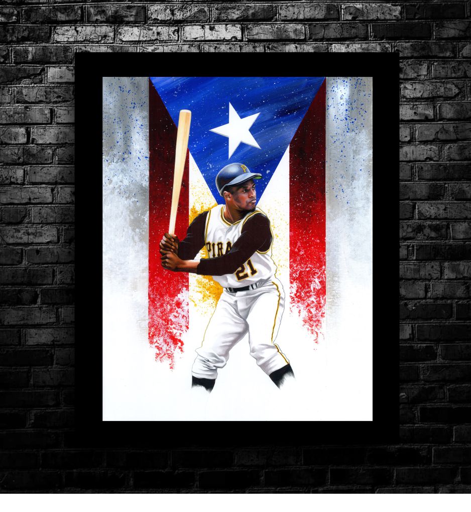 A Limited Edition print of an ORIGINAL mixed media drawing; created using paint, marker and colored pencil. It depicts MLB Legend and Hall of Famer, Roberto Clemente. Each print is individually numbered and signed by Ken. Print run is limited to 50.