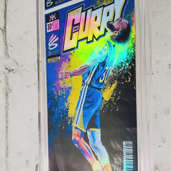 WCCS and Canvas Marketing present EXHILARATION! These are limited to just (25) Curry Comic Cover Slabs. EACH comic sized slab is a holographic foil, signed by the artist himself. Ken has painted each image digitally using the art program Procreate. Each image is a reproduction on holographic film of an ORIGINAL work of art...These are not Photo-shopped images.